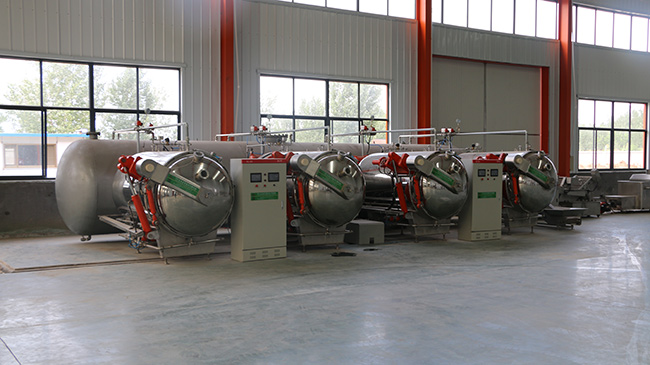 真空膨化系統主要是由壓力罐和一個(gè)體積比壓力罐大5-10倍的真空罐組成。果蔬原料經(jīng)預處理后,干燥至水分含量15%-25%(不同的果蔬要求的含水量不同)。然后將果蔬置于壓力罐內,通過(guò)加熱和加壓,使果蔬內部水分突然汽化、閃蒸,是果蔬細胞膨脹達到膨化的目的。