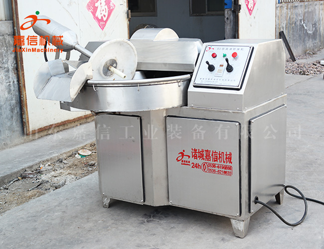 斬拌機利用斬刀高速旋轉的斬切作用,將肉塊,碎肉,脂肪等主要原料精細的斬切成肉餡或肉泥,同時(shí)將其它原料如水,冰片,輔料一起攪拌成均勻的乳狀物。斬刀高速旋轉,可以縮短運行時(shí)間,減少物料發(fā)熱量,保持餡料的天然色澤、彈性、出品率和產(chǎn)品的保質(zhì)期。