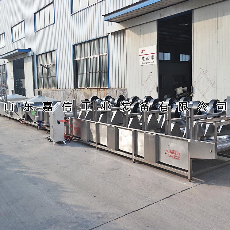 將包裝后的產(chǎn)品進(jìn)行巴氏滅菌、烘干或風(fēng)干處理,能夠有效保護物料本身的色澤和品質(zhì)。處理完的產(chǎn)品可直接進(jìn)行貼標、裝箱,適宜流水作業(yè),提高企業(yè)自動(dòng)化程度。本機傳動(dòng)采用調速減速電機,網(wǎng)帶運行平穩,除風(fēng)機、電機等標準件外,全部為304不銹鋼制作。
