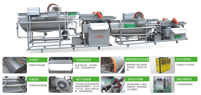 無(wú)阻擋缸體設計,避免物料清洗中的多次碰撞損傷;臭氧消毒系統,有效的去除果蔬殘留農藥及洗滌用品殘留物的毒性;自動(dòng)補水設計,無(wú)需人工補水。